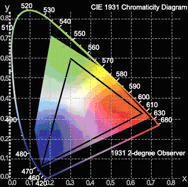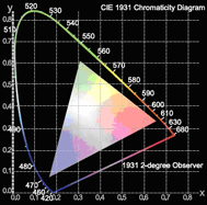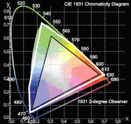 可以通過擴展色域圖上的顯示三角以使顯示系統(tǒng)包含更多的色彩。因為這是一個三角形,你不可以同時增加黃色以及深紅的區(qū)域,所以你必須得選擇。你必須意識到當你增加三角區(qū)域去擴展色域的時候,系統(tǒng)的整體亮度也隨之減少;這樣的遞減是非常明顯的,哪怕相對應的色域擴展很小。