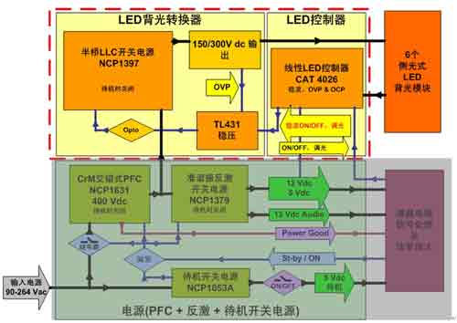 圖7:背光部分采用NCP1397和CAT4026的46英寸LED背光液晶電視電源示意圖。