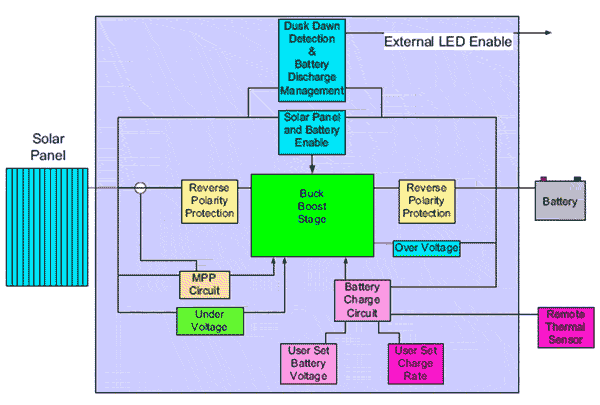 設(shè)計工作包括根據(jù)功率需求的增加隔離拓撲結(jié)構(gòu)。電池充電狀態(tài)的管理是由適當?shù)某潆娝惴ㄍ瓿傻。太陽能電池板安裝技師可以選擇輸出電壓和電池充電速率。由于控制器要連接到太陽能電池板,它必須具有最大功率點跟蹤,為最終客戶提供高價值?刂破饔袃蓚正使能(Enable)電路,一個電路檢測黑夜時間,另一個檢測電池的充電狀態(tài),使外部電路不會使電池對損壞點放電。由于控制器將由不同程度經(jīng)驗的現(xiàn)場技術(shù)人員和新手安裝,因此重要的是輸入和輸出必須有反向極性保護。另外,控制器和電池可能安裝在過熱或過冷的位置,控制器必須采用電池充電溫度補償。設(shè)計還應(yīng)包括安全功能,如電池過壓檢測和太陽能電池板欠壓檢測。
