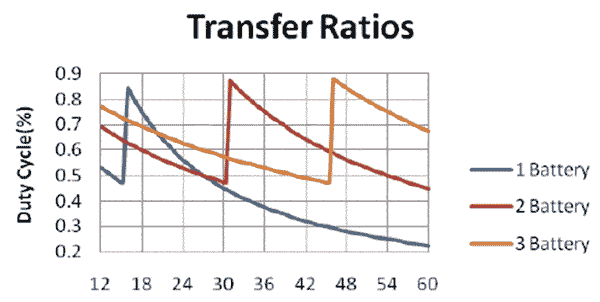 圖4:多個電池降壓和升壓模式之間的傳遞比