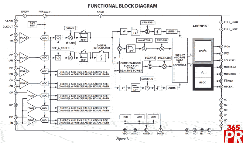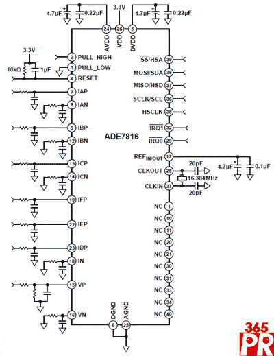 ADE7816電能計量IC采用3.3 V電源供電,提供40引腳LFCSP封裝,無鉛且符合RoHS標準。下載數(shù)據(jù)手冊,請訪問http://www.analog.com/static/imported-files/data_sheets/ADE7816.pdf。