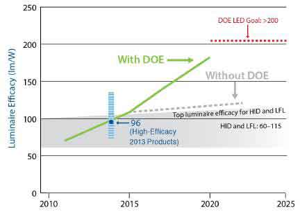 圖7. 美國(guó)能源部對(duì)于LED燈具發(fā)展規(guī)劃