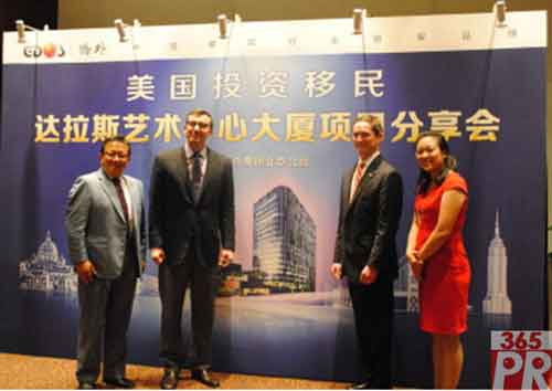 【產(chǎn)通社,7月4日訊】達(dá)拉斯縣(管轄包括達(dá)拉斯市在內(nèi)的26個城市)法官克雷∙金肯思與史維特斯資金集團CEO何利丹先生于周五在北京向中國投資人介紹了達(dá)拉斯市官方區(qū)域中心優(yōu)異的業(yè)績記錄和達(dá)拉斯有利的商業(yè)環(huán)境。  達(dá)拉斯市官方區(qū)域中心由達(dá)拉斯市政府與史維特斯EB-5基金公私合作而成立,在過去三年中成功為達(dá)拉斯市吸引超過2.5億的境外資本。EB-5投資人可在一個至少創(chuàng)造10個就業(yè)崗位的項目中投資至少50萬美金,若項目滿足了移民局的條件,則投資人可在經(jīng)過嚴(yán)格背景調(diào)查后獲得美國永久居民身份。  此次短暫的周末旅行是金肯思法官2011年上任以來的第二次遠(yuǎn)東之行!斑_(dá)拉斯縣繁榮多樣的經(jīng)濟使我們在全球經(jīng)濟中都具有競爭力。我們在美國經(jīng)濟衰退后比其他任何地方恢復(fù)得都要好,使用靈活的境外資本是其中重要的原因之一! 金肯思法官說。  因藝術(shù)中心大廈的公共雕塑公園將對藝術(shù)區(qū)的繁榮發(fā)展作出突出貢獻(xiàn),達(dá)拉斯市政府為大廈提供了700萬美元的稅收補助。達(dá)拉斯市長邁克∙洛林說:“藝術(shù)中心大廈的開發(fā)計劃已醞釀良久,我很高興達(dá)拉斯市官方區(qū)域中心在項目最終的成功開發(fā)上起了關(guān)鍵作用。謝謝我的朋友金肯思法官對該項目及達(dá)拉斯市官方區(qū)域中心的支持!  史維特斯的CEO何利丹說:“有公共部門的積極支持是達(dá)拉斯市官方區(qū)域中心與其他區(qū)域中心的最大區(qū)別。我們目前已有來自世界各地的EB-5投資人。能請到金肯思法官我們感到非常榮幸,這是一個很好的公私合作制的例子,我也期待我們今后會有更多合作。”  查詢進(jìn)一步信息,請訪問官方網(wǎng)站 http://www.Civitascapital.com。(Interfax Business Wire) |
