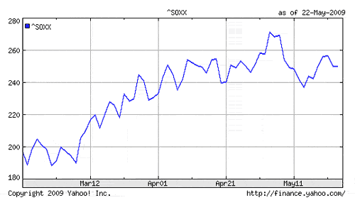 【產(chǎn)通社/楊棋,5月25日】在各國(guó)刺激經(jīng)濟(jì)政策的推動(dòng)下,費(fèi)城證券交易所半導(dǎo)體行業(yè)指數(shù)(PHLX SEMICONDUCTOR SECTOR INDEX,SOXX)已經(jīng)從3月初最低點(diǎn)增長(zhǎng)了30%。到5月22日收盤(pán)05:15am,SOXX收?qǐng)?bào)250.46,升0.06。