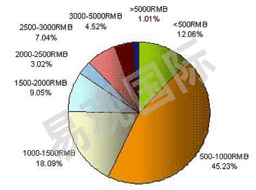 由于MP4產(chǎn)品類(lèi)別不同,檔次的不同,價(jià)格也呈現(xiàn)很大落差,目前500-1000元間的產(chǎn)品銷(xiāo)量最好,占總體銷(xiāo)量的45.23%,說(shuō)明價(jià)格仍是影響消費(fèi)者購(gòu)買(mǎi)的最大因素,因此,對(duì)廠商而言,如何進(jìn)行合理產(chǎn)品市場(chǎng)定位十分重要。