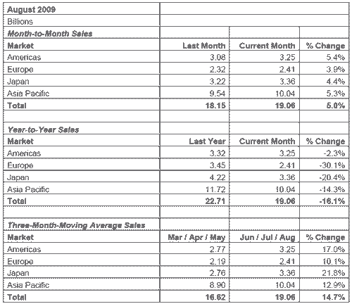 SIA總裁George Scalise表示,在消費者支出持續(xù)復蘇帶動小,全球半導體銷售連續(xù)6個月回升。其中,各種節(jié)能產品(從汽車到家用產品)的一系列激勵措施,提升了半導體的需求。