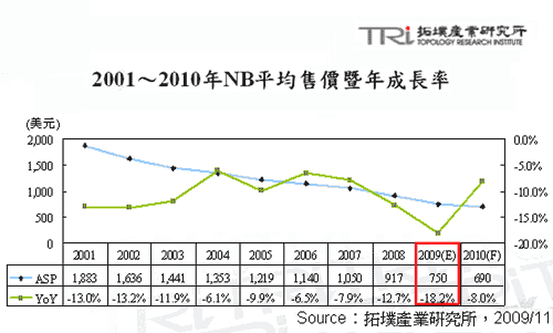 TRI拓墣產(chǎn)業(yè)研究所:2009年亞太NB市場(chǎng)將至23.1%