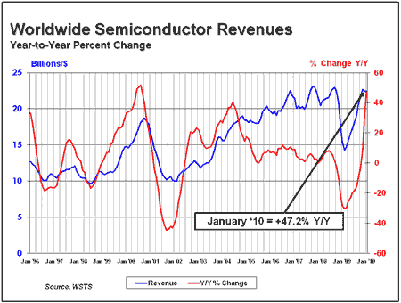 他說:“目前我們已見到,包括個人計算機、手機、汽車和工業(yè)應用等需求推手所展示的力道。這個趨勢若能持續(xù)下去,對2010年成長超過去年11月預測的2421億美元,就能持正面的態(tài)度。不過藉由顧客消費推動的全球經(jīng)濟成長,將會是維持這個趨勢的關鍵。”