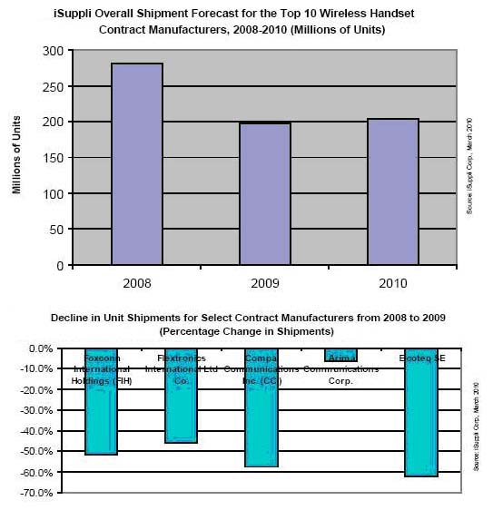 手機(jī)合同制造商繼續(xù)面臨挑戰(zhàn),實(shí)際上是2009年劇變的后遺癥。2009年全球手機(jī)市場(chǎng)下滑,迫使整個(gè)產(chǎn)業(yè)供應(yīng)鏈進(jìn)行戰(zhàn)略調(diào)整。為了應(yīng)對(duì)需求下降,許多手機(jī)廠商調(diào)整了整體制造與外包策略,ODM和EMS提供商也受到影響。