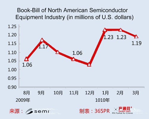 SEMI資料顯示,北美半導(dǎo)體設(shè)備廠商3月份的3個月平均訂單金額為12.9億美元,較2月12.5億美元成長2.7%,也較去年同期的2.456億美元大增4.233倍。