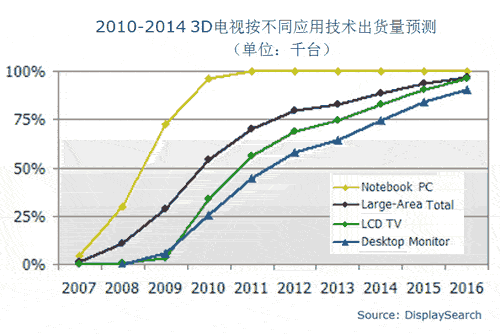 DisplaySerach關(guān)于電視特色與電子電路方案研究總監(jiān)Paul Gray先生表示,TV廠商對(duì)于3D電視產(chǎn)品規(guī)劃很積極,消費(fèi)者已經(jīng)可以從市面上買到40寸到63寸產(chǎn)品,相信今年9月份IFA展將會(huì)有更多新產(chǎn)品會(huì)被推出。另DisplaySearch北美電視市場(chǎng)研究總監(jiān)Paul Gagnon先生也指出,雖然今年上半年北美市場(chǎng)僅Panasonic與Samsung推出3D電視,不過按照目前各家廠商進(jìn)度看來,3D電視發(fā)展情況有可能像Samsung在2009年初首次推出LED背光液晶電視一樣,陸續(xù)地也會(huì)有多家廠商快速地加入市場(chǎng),只是目前發(fā)展速度較LED背光液晶電視稍稍緩慢一些。