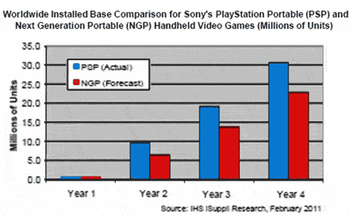 在推出的第四年末,預計NGP的總安裝數(shù)量將達到2280萬個。相比之下,PSP的數(shù)量是3070萬個,高出34.8%。