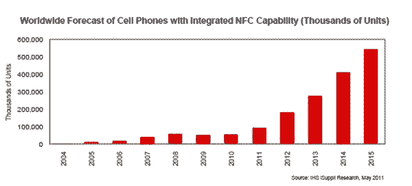谷歌也在Android智能手機(jī)中力推移動(dòng)支付技術(shù),加之Isis計(jì)劃的調(diào)整,促使IHS iSuppli公司調(diào)高了對全球NFC手機(jī)出貨量的預(yù)測。IHS公司現(xiàn)在預(yù)測,2011年全球NFC手機(jī)出貨量將達(dá)到9320萬部,去年12月的預(yù)測是7980萬部。