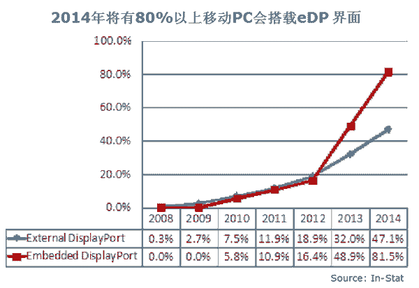 In-Stat在DisplayPort: 改變面板與電腦生態(tài) (DisplayPort: DP, eDP, and iDP Set to Change Display and PC Landscapes) 的報告中闡述以下幾點: