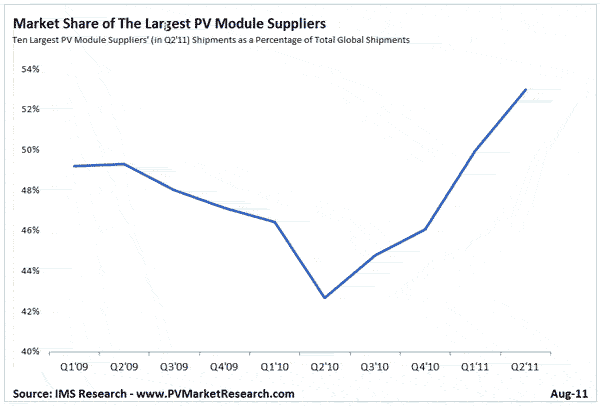 【產(chǎn)通社,9月1日訊】IMS Research消息,Q2全球前三大PV模組供應(yīng)商全部是中國企業(yè):尚德(Suntech)、英利(Yingli)和天合光能(Trina Solar)。雖然市場環(huán)境不佳,三家中國公司的交貨量依然環(huán)比上一季度增加了20%以上。