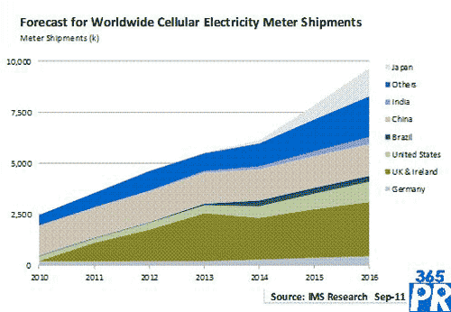 【產(chǎn)通社,10月18日訊】IMS Research最近報(bào)告“2011年全球智能電表市場(The World Market for Smart Electricity Meters–2011)”顯示,集成有蜂窩通信模塊的先進(jìn)電表市場,將從2010年的260萬臺(tái),增加到2016年的950萬臺(tái),其中美國和英國將占大多數(shù)交貨量。在美國,通信技術(shù)已經(jīng)將每臺(tái)電表數(shù)據(jù)計(jì)劃方面的成本降低到每月1美元以下。查詢進(jìn)一步信息,請?jiān)L問http://www.imsresearch-usa.com。