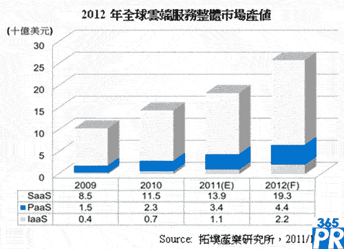 若從軟件即服務(wù)(Software as a Service;SaaS)、基礎(chǔ)建設(shè)即服務(wù)(Infrastructure as a Service;IaaS)與平臺(tái)即服務(wù)(Platform as a Service;PaaS)三個(gè)層次的云端服務(wù)模式來看,2012年Amazon在IaaS領(lǐng)域的龍頭地位仍難撼動(dòng),Salesforce.com則持續(xù)宣示其在SaaS與PaaS市場(chǎng)上的勝利。拓墣分析,未來PaaS與IaaS兩層的壟斷性會(huì)逐漸增強(qiáng),SaaS將呈現(xiàn)百家爭(zhēng)鳴的景象。由于PaaS具掌控產(chǎn)業(yè)之核心價(jià)值,SaaS的未來其實(shí)是建立依附在完善的PaaS之下,需以PaaS為核心建構(gòu)與營運(yùn)新一代的SaaS應(yīng)用服務(wù)。因此未來云端市場(chǎng)將逐漸朝向PaaS+SaaS之商業(yè)模式演進(jìn),相對(duì)成熟的PaaS可望加速軟件應(yīng)用服務(wù)發(fā)展。