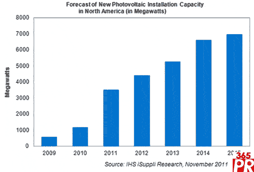 【產(chǎn)通社,11月17日訊】據(jù)IHS iSuppli公司的北美光伏市場報告,美國加州的許多太陽能項目經(jīng)過多年開發(fā)之后終于投產(chǎn),預(yù)計2011年北美的光伏(PV)太陽能系統(tǒng)安裝容量將大增200%。