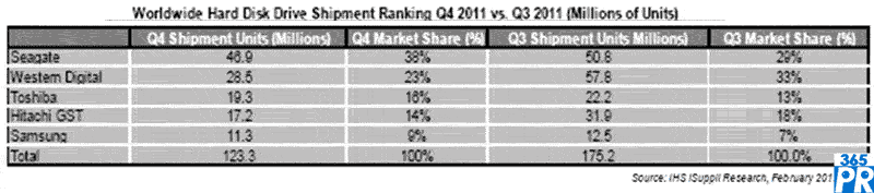 雖然泰國(guó)洪災(zāi)對(duì)硬盤(pán)產(chǎn)業(yè)造成了巨大沖擊,但由于硬盤(pán)短缺導(dǎo)致價(jià)格全面上漲,希捷和西部數(shù)據(jù)的毛利潤(rùn)率均在第四季度升至紀(jì)錄最高水平。