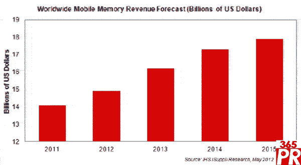 預(yù)計今年移動存儲營業(yè)收入將達到149億美元,比2011年的141億美元增長6%。包括整個移動DRAM領(lǐng)域以及NAND與NOR的移動部分,總體移動存儲營業(yè)收入明年將超過162億美元。到2015年,營業(yè)收入將達到179億美元,比2011年增長近30%。