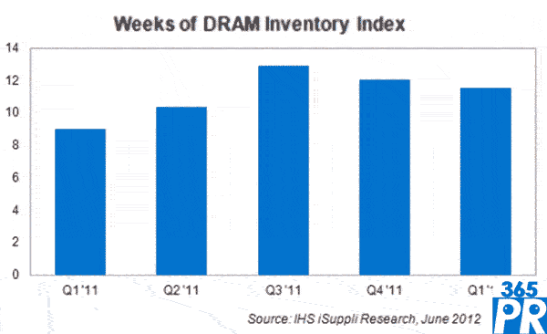 DRAM市場穩(wěn)步增長,表現(xiàn)在DRAM庫存指數(shù)上面。今年第一季度該指數(shù)降至11.6周,比2011年第四季度的12.1周下降4%。這是自去年第四季度該指數(shù)升至12.9周以來,連續(xù)第二個季度下降。2011年多數(shù)時間該指數(shù)都呈現(xiàn)大幅上升趨勢。
