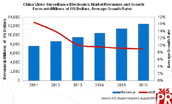 【產(chǎn)通社,8月27日訊】據(jù)IHS iSuppli公司的中國(guó)研究報(bào)告,由于出口增長(zhǎng)和高清(HD)相機(jī)技術(shù)日益得到采用,中國(guó)視頻監(jiān)控市場(chǎng)2012年預(yù)計(jì)增長(zhǎng)速度將達(dá)到兩位數(shù)。2011年中國(guó)視頻監(jiān)控市場(chǎng)營(yíng)業(yè)收入達(dá)到76億美元,比2010年增長(zhǎng)16.5%。IHS iSuppli公司預(yù)測(cè),2012年該市場(chǎng)將達(dá)到87億美元,比去年增長(zhǎng)13.9%。到2016年,該市場(chǎng)將增長(zhǎng)到125億美元。