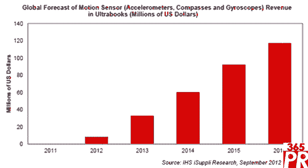 【產(chǎn)通社,9月28日訊】英特爾推動(dòng)未來(lái)的超級(jí)本具備室內(nèi)導(dǎo)航與增強(qiáng)現(xiàn)實(shí)功能,將促進(jìn)面向下一代筆記本的運(yùn)動(dòng)傳感器的銷(xiāo)售急劇增長(zhǎng),未來(lái)四年?duì)I業(yè)收入將增長(zhǎng)到14倍。在超級(jí)本的帶動(dòng)下,包括加速計(jì)、陀螺儀和羅盤(pán)在內(nèi)的運(yùn)動(dòng)傳感器的全球銷(xiāo)售額到2016年將達(dá)到1.173億美元,而2012年只有830萬(wàn)美元,2012-2016年的復(fù)合年度增長(zhǎng)率高達(dá)93.9%。