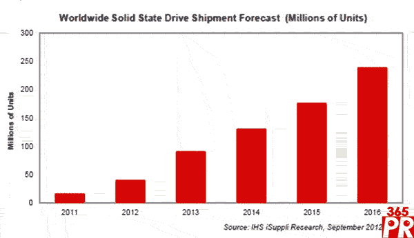 【產(chǎn)通社,9月28日訊】據(jù)IHS iSuppli公司,低功耗將是驅(qū)動(dòng)超級本固態(tài)硬盤(SSD)增長的重要因素,明年SSD出貨量預(yù)計(jì)增長一倍以上。預(yù)計(jì)2013年SSD出貨量將達(dá)到9200萬個(gè),而今年和去年分別是4100萬和1700萬個(gè)。明年過后仍將強(qiáng)勁增長,保持兩位數(shù)的速度,直到2016年,屆時(shí)預(yù)計(jì)SSD出貨量將達(dá)到2.4億個(gè)。