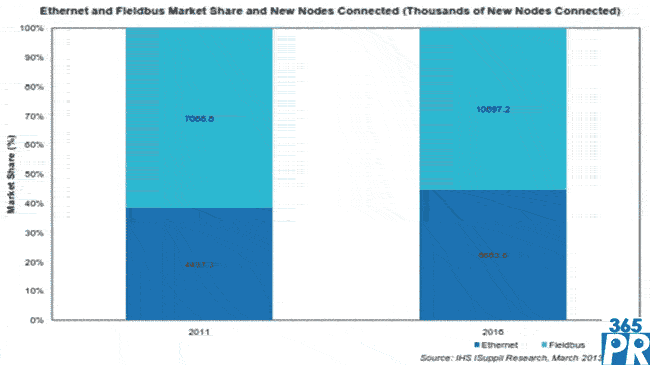 【產(chǎn)通社,3月28日訊】據(jù)IHS公司旗下的IMS Research的研究,2011-2016 年流程產(chǎn)業(yè)的以太網(wǎng)節(jié)點有望增長近一倍,在工業(yè)網(wǎng)絡(luò)市場不斷挑戰(zhàn)現(xiàn)場總線的主導(dǎo)地位。流程產(chǎn)業(yè)中的工業(yè)以太網(wǎng)節(jié)點2016年出貨量有望達(dá)到870萬個,比2011年的440萬個大增96%。這意味著2016年工業(yè)以太網(wǎng)將占到流程產(chǎn)業(yè)中的網(wǎng)絡(luò)節(jié)點的45%,高于2011年的39%,F(xiàn)場總線將為此付出代價,同期內(nèi)的增長率預(yù)計為51%。