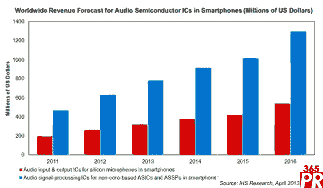 【產(chǎn)通社,4月11日訊】據(jù)IHS公司旗下IMS Research發(fā)表的音頻IC報告,由于能夠改善音質(zhì)和增強蘋果Siri等語言識別用戶界面,音頻集成電路(IC)在手機領(lǐng)域的應(yīng)用將急劇增長,預(yù)計未來五年用于降噪和自然語音的芯片的使用量將最大。