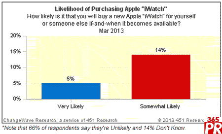 451 Wave Research調(diào)查顯示19%美國人對iWatch有興趣