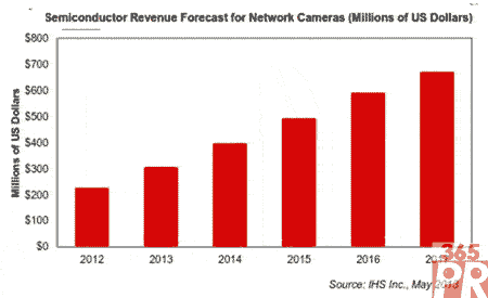 【產(chǎn)通社,5月22日訊】據(jù)IHS公司的工業(yè)電子報(bào)告,由于公共與個(gè)人安全越來越受重視,網(wǎng)絡(luò)監(jiān)控?cái)z像頭半導(dǎo)體市場(chǎng)今年將繼續(xù)擴(kuò)張。2013年網(wǎng)絡(luò)監(jiān)控?cái)z像頭營(yíng)業(yè)收入將達(dá)到3.071億美元,比去年的2.286億美元增長(zhǎng)34%。從去年開始,該市場(chǎng)將連續(xù)三年保持30%以上的增長(zhǎng)率。去年增長(zhǎng)33%,2014年預(yù)計(jì)增長(zhǎng)30%。到2017年將增長(zhǎng)到7億美元。