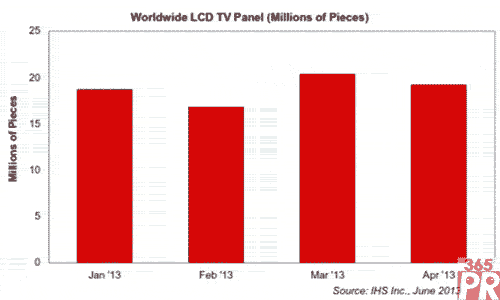 【產通社,6月22日訊】據(jù)IHS公司的“液晶面板供應鏈追蹤報告-電視-全球”報告,隨著第二季度淡季的來臨,4月份全球大尺寸液晶電視面板出貨量下降5%。4月份,電視品牌的全球電視面板采購量為1930萬塊,低于3月份的2040萬塊。
