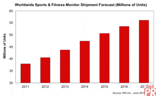 【產通社,6月22日訊】在專業(yè)運動員和鍛煉愛好者等多種用戶的需求推動下,全球體育與健身監(jiān)測計出貨量未來五年合計出貨量將超過2.5億個。據IHS公司旗下IMS Research的一份報告,2017年出貨量將從2013年的4380萬個增長到5620萬個。在這五年里,總體出貨量將達到2.52億個。