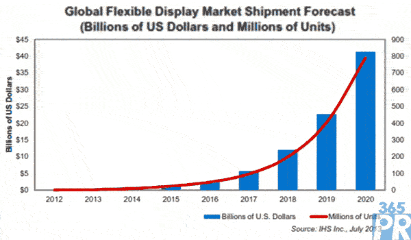 2020年將有8億柔性顯示器裝備在智能手機和平板電腦上