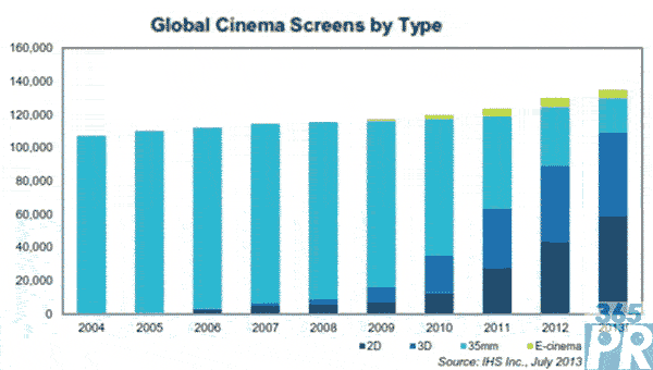 【產(chǎn)通社,7月3日訊】據(jù)IHS公司的報告,在份額超過35毫米銀幕只有一年半之后,數(shù)字銀幕今年底的全球占有率將達(dá)到90%。大約14年前,首次在商業(yè)影院以數(shù)字方式放映長片。去年1月,數(shù)字銀幕取代35毫米,成為影院的主要放映格式。