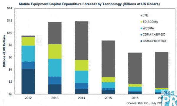 LTE方面的設(shè)備支出將占新支出中的大部分,將達(dá)63億美元,幾乎是今年36億美元的兩倍。2015年LTE方面的資本支出將為60億美元,2016年為51億美元,2017年是59億美元。