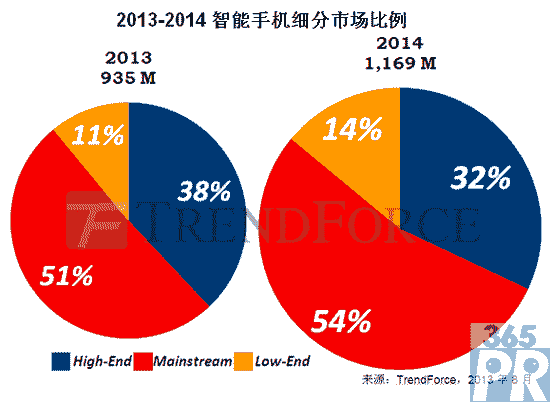 【產(chǎn)通社,8月30日訊】TrendForce調(diào)查顯示,小米公司本季度在中國推出定價799元人民幣的紅米手機,以其中端規(guī)格低端售價在中國千元智能機市場上掀起一陣波瀾。