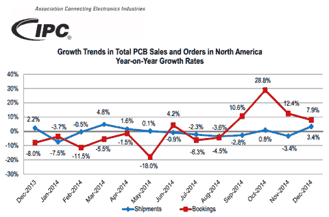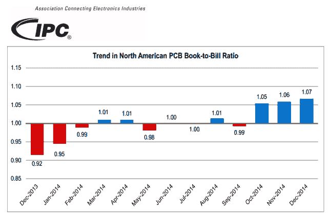 【產(chǎn)通社,2月5日訊】國際電子工業(yè)聯(lián)接協(xié)會(huì)(IPC)發(fā)布的《12月份北美地區(qū)PCB行業(yè)調(diào)研統(tǒng)計(jì)報(bào)告》顯示,12月份北美PCB銷售量和訂單量與2013年同期持平,但是訂單出貨比在第四季度表現(xiàn)良好,對(duì)2015年的銷量是個(gè)積極的信號(hào)。