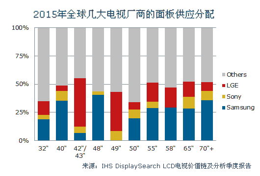 2015年全球電視面板出貨量近半成將銷往三星、LGE和索尼