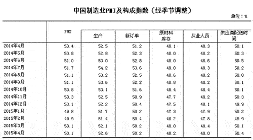 國家統(tǒng)計局公布4月PMI數(shù)據(jù):制造業(yè)50.1%,非制造業(yè)53.4%