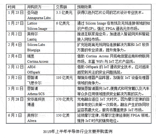 縱觀科技界的歷屆并購潮,2000年背后推手是互聯(lián)網(wǎng),2008年是金融危機(jī),分別由技術(shù)和財(cái)政因素主導(dǎo)。在世界經(jīng)濟(jì)步入新常態(tài)的當(dāng)今,本輪并購潮的推手是快速普及的物聯(lián)網(wǎng)(IoT)科技,只是各家企業(yè)的“強(qiáng)芯計(jì)”各不相同。