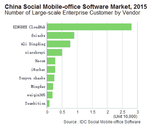 【產(chǎn)通社,3月14日訊】IDC近期的研究表明,從2015年開始,中國社交化移動辦公軟件市場開始呈爆發(fā)式增長。截止2015年末,中國社交化移動辦公軟件市場累計注冊用戶達到8300萬人,累計企業(yè)用戶達到600萬家。整個市場仍有很大發(fā)展空間,未來兩到三年內(nèi)將繼續(xù)保持高速增長。中國社交化移動辦公軟件按產(chǎn)品功能可劃分為以下三個主要類型: (1)移動平臺類:通過SDK或Open API的方式,可以與自身或其他廠商的各類系統(tǒng)集成,從而擴大產(chǎn)品的功能覆蓋。 此類產(chǎn)品以金蝶云之家(KINGDEE Cloud Hub)和阿里釘釘(Ali Dingding)為主要代表。 (2)客戶關(guān)系管理類:以銷售和客戶管理為主打功能,目標用戶為銷售管理者及銷售人員。紛享銷客(fxiaoke)、銷售易(xiaoshouyi)、紅圈營銷(Hecom)、外勤365(waiqin365)以及用友超客(Yonyou chaoke)是此類產(chǎn)品的典型代表。 (3)協(xié)作辦公類:此類產(chǎn)品數(shù)量眾多,如明道(Mingdao)、今目標(Jinmubiao)、iWorker、北森Tita、Worktile、Teambition、群策、企明島、石墨等。從產(chǎn)品的功能特點、目標客戶量級還可以劃分為團隊級產(chǎn)品和企業(yè)級產(chǎn)品。 在大型企業(yè)市場,從產(chǎn)品的大型企業(yè)用戶(企業(yè)員工人數(shù)在1000人以上)數(shù)量來看,金蝶云之家以28000家用戶占據(jù)首位,紛享銷客和阿里釘釘分別排在第二、三位。云之家產(chǎn)品無縫銜接金蝶自身的ERP系統(tǒng),通過開放平臺還可以接入眾多第三方企業(yè)級應(yīng)用,如金山WPS Office、Coremail郵件系統(tǒng)等。良好的移動互聯(lián)網(wǎng)產(chǎn)品體驗,加上更為專業(yè)的企業(yè)級產(chǎn)品基因和業(yè)務(wù)場景設(shè)計,使得云之家受到大型企業(yè)客戶的認可和信任。 中型企業(yè)市場(企業(yè)員工人數(shù)250-999人)處于混戰(zhàn)格局。近年來金蝶云之家和阿里釘釘先后加大投入沖擊市場,今目標在獲得融資后也持續(xù)發(fā)力,這三家在中型企業(yè)用戶數(shù)量上極為接近。 在小企業(yè)市場(企業(yè)員工人數(shù)在250人以下),產(chǎn)品的基礎(chǔ)功能已可滿足企業(yè)的大部分需求,而產(chǎn)品費用才是企業(yè)考慮的首要問題。因此企業(yè)用戶數(shù)量排名前三的廠商均采用免費模式,今目標暫居市場第一,阿里釘釘和金蝶云之家分別排在第二、三名。 從產(chǎn)品的注冊用戶數(shù)量來看,阿里釘釘和金蝶云之家兩個平臺類產(chǎn)品排在市場的前兩位。阿里釘釘從15年初正式發(fā)布了1.1版本以來,憑借免費的產(chǎn)品策略、良好的用戶體驗和阿里強大的品牌效應(yīng),在短短一年時間迅速累積到了1500萬的注冊用戶。金蝶云之家也憑借其在企業(yè)級市場優(yōu)秀的用戶基礎(chǔ)和品牌認知度,在15年末累積到1000萬的注冊用戶。 IDC中國企業(yè)級系統(tǒng)與軟件研究部分析師王楠對中國社交化移動辦公軟件市場在未來兩到三年內(nèi)的預測為:2016年用戶數(shù)量將繼續(xù)保持高速增長,整個市場仍有很大發(fā)展空間。免費和收費產(chǎn)品將長期共存,中小企業(yè)以及創(chuàng)業(yè)團隊需要免費的產(chǎn)品降低運營成本;大型企業(yè)和高端客戶希望通過付費方式,來對所購買的產(chǎn)品和服務(wù)做出保障。另外BAT會加緊布局,騰訊的企業(yè)QQ、微信企業(yè)號早已搶占市場;阿里釘釘在2015也增長強勁;百度預計不久也將發(fā)布企業(yè)移動產(chǎn)品。對于其他廠商來說,BAT對企業(yè)市場的入侵,既可能帶來市場競爭也可能擁有合作的機會。資本市場將繼續(xù)關(guān)注社交化移動辦公領(lǐng)域。隨著市場的擴大,未來將有更多融資、上市活動發(fā)生。 查詢進一步信息,請訪問官方網(wǎng)站 http://www.idc.com.cn/about/press.jsp?id=OTUw,或發(fā)email至:fwang@idc.com。