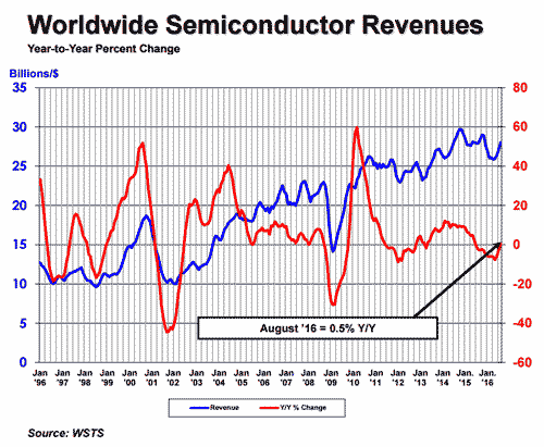 【產(chǎn)通社,10月25日訊】美國半導體產(chǎn)業(yè)協(xié)會(Semiconductor Industry Association, SIA)官網(wǎng)消息,2016年8月全球半導體平均銷售額為280.34億美元,較7月279億美元成長3.5%,這是2013年5月以來最大的月度增幅;較2015年同期278.84億美元,成長0.5%,是自2015年6月以來實現(xiàn)的首次年度月增幅,也終止了市場連續(xù)13個月年減的疲態(tài)。 SIA總裁兼CEO John Neuffer聲明稿指出,全球半導體銷售經(jīng)歷好幾個月的低迷之后,近來出現(xiàn)反彈跡象,8月份有了強勁成長。其中尤以美洲地區(qū)的表現(xiàn)最令人振奮,將近3年來第一次出現(xiàn)6%成長率,增幅領(lǐng)先各地區(qū)?偟膩碚f,隨著2017年臨近,今年全球銷售仍不及2015年,但是似乎朝正確軌道前進。   分區(qū)而言,和前月相比,美洲銷售上揚6.3%、日本增加4.8%、中國攀升3.1%,亞太/其他地區(qū)走高2.7%,歐洲揚升0.7%。和2015年同期相比,中國大增7.1%、日本提高2.2%;其他地區(qū)則下滑,亞太/其他地區(qū)減少2.7%、美洲萎縮3.1%、歐洲降低3.3%。 查詢進一步信息,請訪問官方網(wǎng)站 http://www.semiconductors.org/industry_statistics/wsts_subscription_package/。