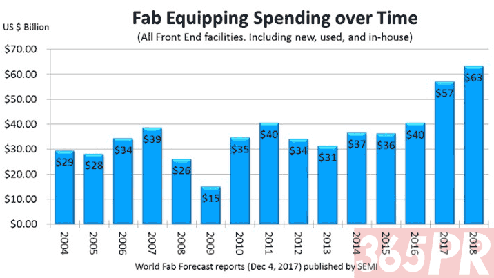 許多公司,包括Intel, Micron, Toshiba (包括Western Digital)以及GLOBALFOUNDRIES在2017年和2018年都增加了對(duì)晶圓廠的投資。