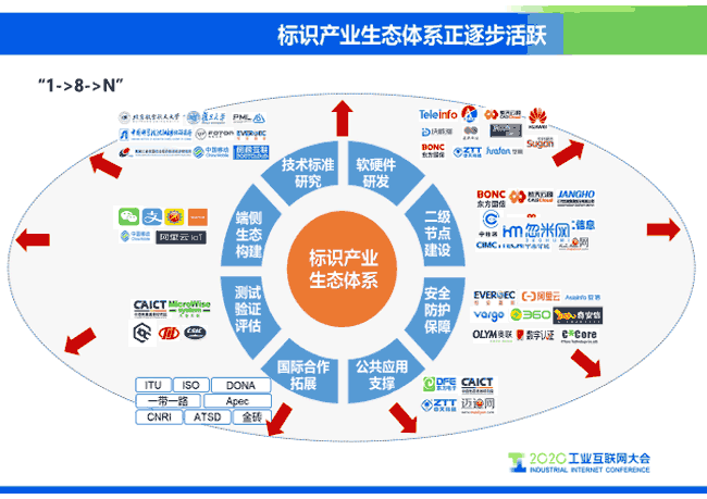 標(biāo)識解析服務(wù)節(jié)點的部署模式將不僅僅是物理服務(wù)器的架構(gòu)模式,逐步支持云化部署。在這樣一個云化發(fā)展的大趨勢下,依托工業(yè)互聯(lián)網(wǎng)產(chǎn)業(yè)聯(lián)盟標(biāo)識工作組,逐步形成了“一個工作組、八個方面”的標(biāo)識產(chǎn)業(yè)生態(tài),在包括標(biāo)識軟硬件研發(fā)、二級節(jié)點建設(shè)、安全防護(hù)、公共應(yīng)用支撐、國際合作、測試驗證、端到端生態(tài)以及標(biāo)識解析技術(shù)標(biāo)準(zhǔn)等八個方面,廣泛團(tuán)結(jié)產(chǎn)學(xué)研用各方力量,產(chǎn)業(yè)生態(tài)加速構(gòu)建。