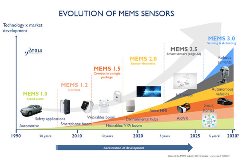 【產(chǎn)通社,4月19日訊】在集成電路行業(yè)不斷發(fā)展的背景下,傳統(tǒng)集成電路無法持續(xù)地滿足終端應(yīng)用領(lǐng)域日漸變化的需求,MEMS行業(yè)因此成長起來。隨著微電子學(xué)、微機(jī)械學(xué)以及其他基礎(chǔ)自然科學(xué)學(xué)科的相互融合,誕生了以集成電路工藝為基礎(chǔ),結(jié)合體微加工等技術(shù)打造的新型芯片。 MEMS屬于集成電路行業(yè)中的特色工藝,是微電路和微機(jī)械按功能要求在芯片上的一種集成,基于光刻、腐蝕等傳統(tǒng)半導(dǎo)體技術(shù),融入超精密機(jī)械加工,并結(jié)合力學(xué)、化學(xué)、光學(xué)等學(xué)科知識和技術(shù)基礎(chǔ),使得一個毫米或微米級的MEMS具備精確而完整的機(jī)械、化學(xué)、光學(xué)等特性結(jié)構(gòu)。 MEMS器件目前被廣泛應(yīng)用于消費(fèi)電子、汽車電子、工業(yè)與通訊、生物與醫(yī)療等行業(yè)。受益于5G通信、人工智能、移動互聯(lián)網(wǎng)(智慧城市、智慧醫(yī)療、智慧安防)、光電通信、自動工業(yè)控制等市場的高速成長,MEMS行業(yè)發(fā)展勢頭強(qiáng)勁。根據(jù)Yole Development的研究預(yù)測,全球MEMS行業(yè)市場規(guī)模將從2020年的121億美元增長至2026年的約182億美元,CAGR達(dá)7.2%,通訊、生物醫(yī)療、工業(yè)汽車及消費(fèi)電子的應(yīng)用增速均非?捎^,其中通訊領(lǐng)域的增長率最高。預(yù)計到2026年,10億美元以上的MEMS細(xì)分領(lǐng)域包括射頻MEMS(40.49億美元)、MEMS慣性器件(40.02億美元)、壓力MEMS(23.62億美元)、麥克風(fēng)(18.71億美元)以及未來應(yīng)用(13.63億美元)。 在移動終端上,硅麥克風(fēng)、慣性傳感器已被廣泛采用,且出貨量仍在不斷上升。隨著MEMS產(chǎn)品在醫(yī)療設(shè)備、工業(yè)設(shè)備、汽車電子、消費(fèi)類電子等領(lǐng)域應(yīng)用的推廣和普及,市場對超聲、壓力、微針、芯片實(shí)驗(yàn)室、紅外、硅光子、射頻前端、振鏡、超聲波換能、氣體等MEMS器件的需求也在迅速提升。此外,物聯(lián)網(wǎng)、可穿戴等創(chuàng)新設(shè)備對器件形態(tài)便捷化、微型化需求也將成為推動MEMS發(fā)展的新力量。 隨著終端應(yīng)用市場的擴(kuò)張,MEMS應(yīng)用越來越廣泛,產(chǎn)業(yè)規(guī)模日漸擴(kuò)大,日趨成為集成電路行業(yè)的一個新分支。(張嘉汐,產(chǎn)通發(fā)布)