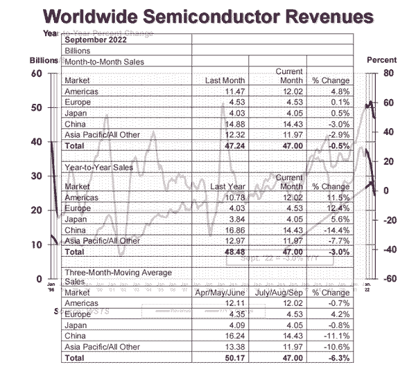 【產(chǎn)通社,11月1日訊】美國(guó)半導(dǎo)體行業(yè)協(xié)會(huì)(SIA)官宣顯示,全球半導(dǎo)體銷(xiāo)售額在2022年9月份逐月下降了0.5%,同比去年則下降3%,這也是自2020年1月以來(lái)首次下滑。 從地區(qū)來(lái)看,9月份,美洲(4.8%)、日本(0.5%)和歐洲(0.1%)的半導(dǎo)體銷(xiāo)售額環(huán)比增長(zhǎng),但亞太地區(qū)/其他地區(qū)(-2.9%)和中國(guó)(-3.0%)的半導(dǎo)體銷(xiāo)售額環(huán)比下降;歐洲(12.4%)、美洲(11.5%)和日本(5.6%)的半導(dǎo)體銷(xiāo)售同比增長(zhǎng),但亞太地區(qū)/其他地區(qū)(-7.7%)和中國(guó)(-14.4%)的半導(dǎo)體銷(xiāo)售同比下降。 2022年第三季度,全球半導(dǎo)體銷(xiāo)售總額為1410億美元,與2021年第三季度相比,同比下降3.0%,與2022年第二季度相比,環(huán)比下降6.3%。 今年6月初,世界半導(dǎo)體貿(mào)易統(tǒng)計(jì)協(xié)會(huì)(WSTS曾預(yù)計(jì),2022年全球半導(dǎo)體市場(chǎng)將增長(zhǎng)16.3%,達(dá)到6460億美元,2023年將繼續(xù)增長(zhǎng)5.1%,達(dá)到6800億美元。 查詢進(jìn)一步信息,請(qǐng)?jiān)L問(wèn)官方網(wǎng)站 http://www.semiconductors.org/monthly-semiconductor-sales-decrease-0-5-globally-in-september/。(Donna Zhang,張底剪報(bào))