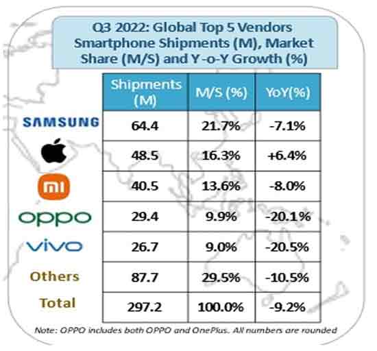【產(chǎn)通社,11月2日訊】根據(jù)Strategy Analytics的最新研究,2022年第三季度全球智能手機出貨量同比下降9%至2.97億部。三星在2022年第三季度以22%的高份額位居全球智能手機市場榜首。蘋果以16%的份額位居第二,是過去12年來第三季度的最好表現(xiàn)。小米、OPPO(包括一加)和Vivo穩(wěn)居前五。 Strategy Analytics高級總監(jiān)Linda Sui表示:“2022年第三季度全球智能手機出貨量同比下降9%至2.97億臺,是智能手機出貨量連續(xù)第五個季度出現(xiàn)年度下滑。庫存調(diào)整和地緣政治問題對今年第三季度的智能手機市場產(chǎn)生了不利影響。同時,不利的經(jīng)濟(jì)條件繼續(xù)影響了消費者對智能手機和其他非必需品的需求! Strategy Analytics總監(jiān)Woody Oh預(yù)計,三星在2022年第三季度的智能手機出貨量為6,400萬部,以22%的高份額位居全球智能手機市場首位。三星本季度出貨量同比下降7%,表現(xiàn)略好于市場總體情況。市場需求向低成本的A和M系列傾斜,而新推出的Z Fold 4和Z Flip 4加強了三星在可折疊智能手機領(lǐng)域的領(lǐng)導(dǎo)地位。2022年第三季度蘋果iPhone全球出貨量為4,900萬部,同比增長6%,占全球市場份額的16%。這是蘋果過去12年來第三季度的最好表現(xiàn),這一成績得益于領(lǐng)先的中國品牌在國內(nèi)和海外市場的低迷。蘋果通過新推出的iPhone 14 Pro和Pro Max在本季度表現(xiàn)良好,而市場對iPhone 14的需求仍然喜憂參半。 2022年第三季度,小米智能手機出貨量為4,050萬部,以近14%的全球市場份額位居第三,相比一年前略有上升。小米的表現(xiàn)優(yōu)于其他領(lǐng)先的中國品牌,出貨量僅同比下降8%,這要歸功于良好的多元化區(qū)域布局。然而,小米繼續(xù)受到歐洲地緣政治不確定性的影響。作為中國品牌,小米在中國和印度市場的表現(xiàn)陰晴不定。OPPO(一加)在2022年第三季度保持第四位,占據(jù)了全球智能手機市場10%的份額。Vivo在2022年第三季度繼續(xù)位居第五,占全球智能手機市場份額的9%。由于中國和其他市場的4G和5G競爭急劇加劇,OPPO(一加)和Vivo都公布了兩位數(shù)的同比下降率,并在大多數(shù)市場份額下滑。 2022年第三季度,除前五名外,其他主要智能手機品牌之間的全球競爭非常激烈。傳音、榮耀、真我(Realme)、聯(lián)想-摩托羅拉和華為躋身前十名榜單,但本季度的成績參差不齊。傳音繼續(xù)保持第六位,在中東歐和中拉美地區(qū)有良好增長。但受亞太和非洲中東地區(qū)疲軟表現(xiàn)的拖累,傳音本季度智能手機出貨量出現(xiàn)兩位數(shù)的同比下降。由于2022年第三季度中國市場銷售回落,榮耀令人印象深刻的復(fù)蘇之旅已陷入停頓,并出現(xiàn)了年度下滑。真我出現(xiàn)兩位數(shù)的年度跌幅。除在中東歐地區(qū)受益于行業(yè)洗牌外,真我在其他地區(qū)都丟失了份額。聯(lián)想-摩托羅拉保持在前十名,但也出現(xiàn)了年度下滑。不過,聯(lián)想-摩托羅拉在亞太地區(qū)實現(xiàn)了穩(wěn)健增長,主要歸功于印度市場。相比之下,華為本季度的智能手機出貨量實現(xiàn)了年度增長,主要受中國市場對4G智能手機的良好需求所推動,如Nova 10系列、P50和Mate 50機型。在全球前十大品牌中,中國品牌占據(jù)八個。所有這些中國品牌的總體年度跌幅為13%,表現(xiàn)弱于整個市場以及位居前兩名的三星和蘋果。 Strategy Analytics預(yù)測,2022年全年全球智能手機出貨量將同比下降9%至10%。地緣政治問題、經(jīng)濟(jì)下滑、能源短缺和價格上漲、匯率波動和疫情帶來的破壞等因素,將在2022年最后一個季度繼續(xù)削弱消費者需求。所有這些不利因素將持續(xù)到明年上半年,直到2023年下半年情況才會有所緩解。三星和蘋果將繼續(xù)表現(xiàn)出色,并保持前兩名的位置。中國品牌需要穩(wěn)定在中國市場的表現(xiàn),并探索新的增長引擎,以終止下滑趨勢。 查詢進(jìn)一步信息,請訪問官方網(wǎng)站 http://www.strategyanalytics.com。(張怡,產(chǎn)通發(fā)布)