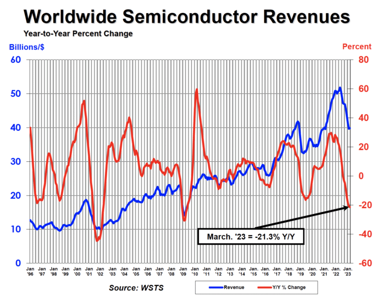 全球半導體銷售額Q1下降8.7%:3月銷售額自2022年5月以來首次上漲